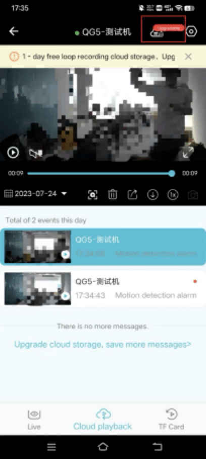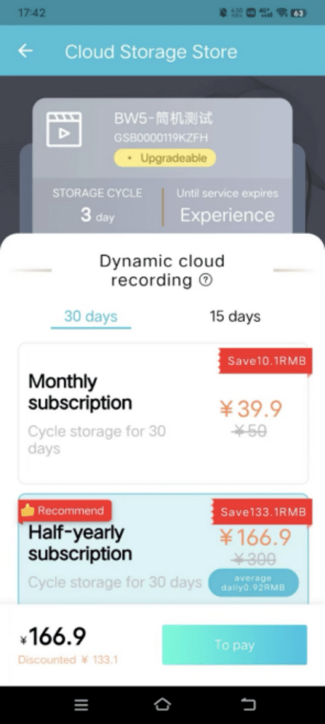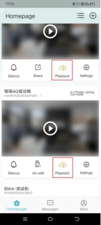 1. Open the App. On the homepage, go to Device List> Playback, click the Cloud icon, and choose the Cloud package you need.