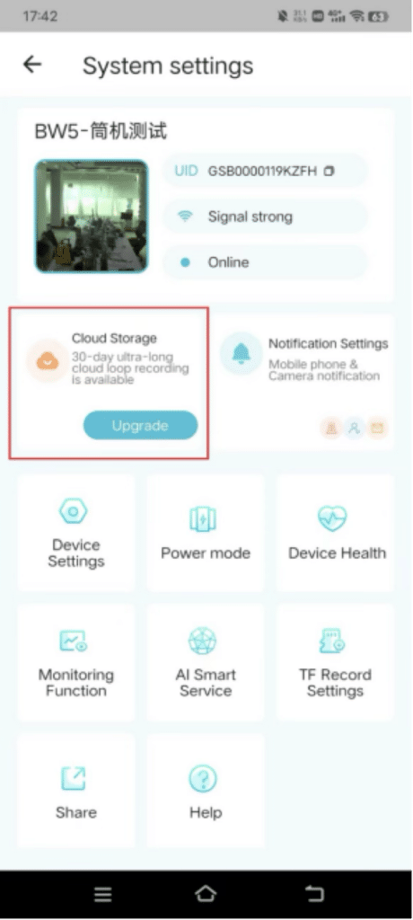 2. Open the App. On the homepage, go to Settings > Cloud Storage> Upgrade > Cloud Storage Store.