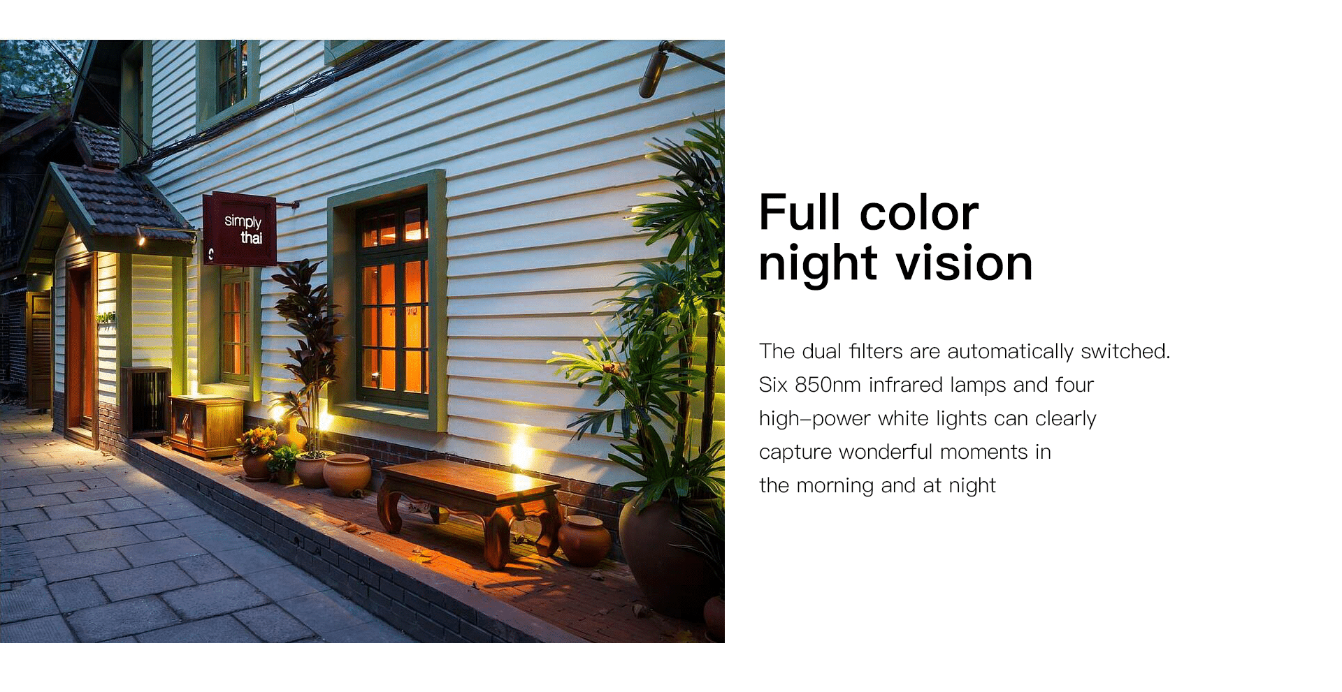 The dual halters are automatically switchedSix 850nm infrared lamps, and four high-power white lights can clearly capture wonderful moments in the morning and at night