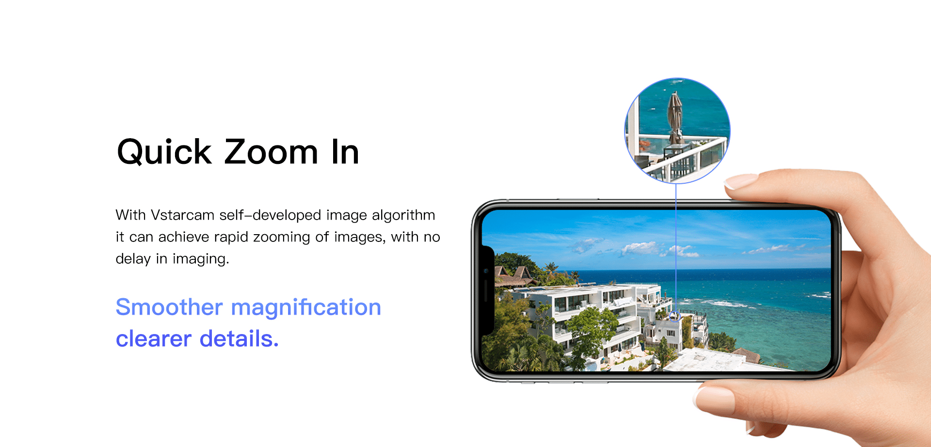 With Vstarcam, a self-developed image algorithm can achieve rapid zooming of images with no delay in imaging.