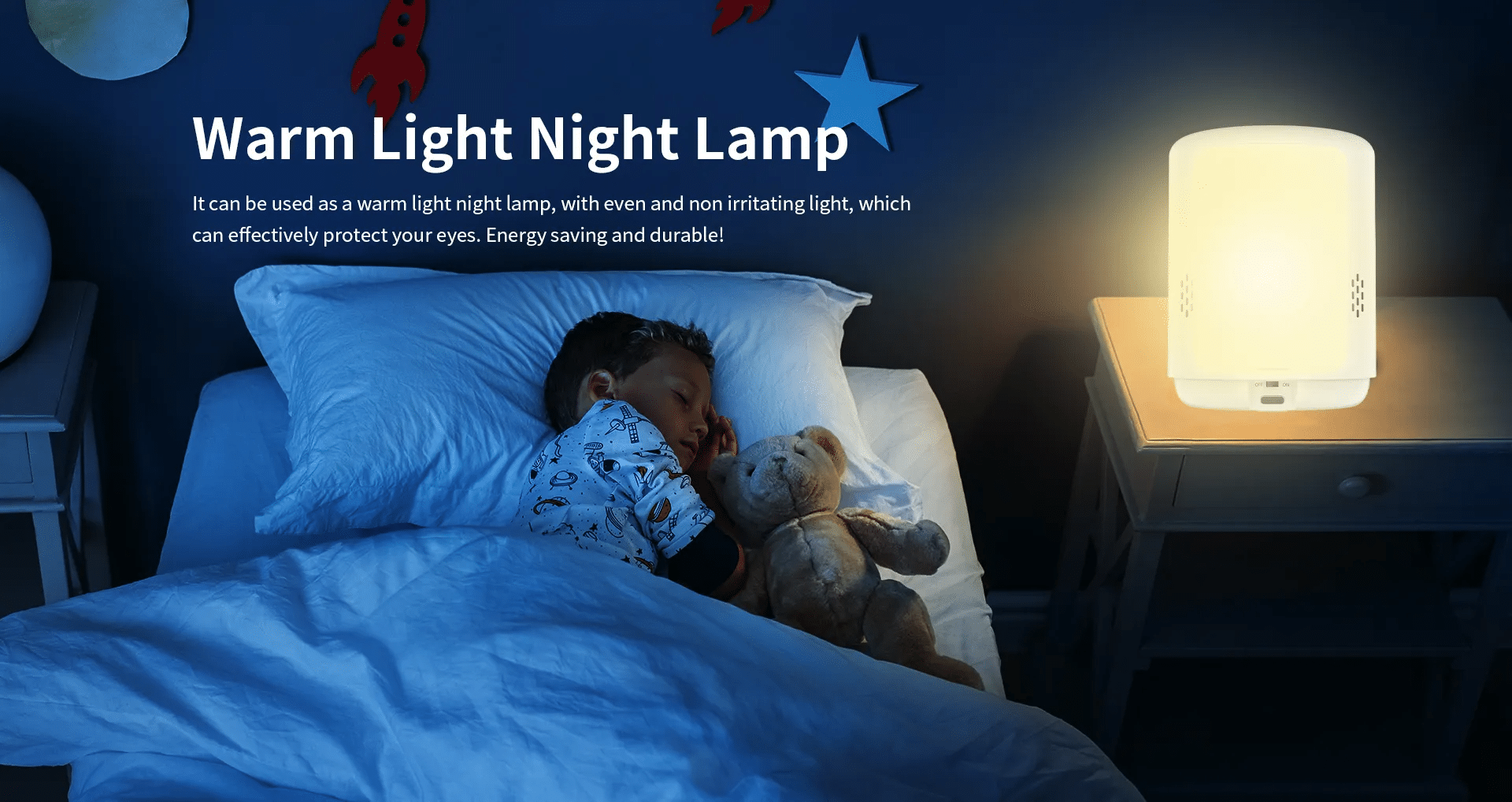 It can be used as a warm light night lamp, with even and nonirritating light, which can effectively protect your eyes. Energy-saving and durable!