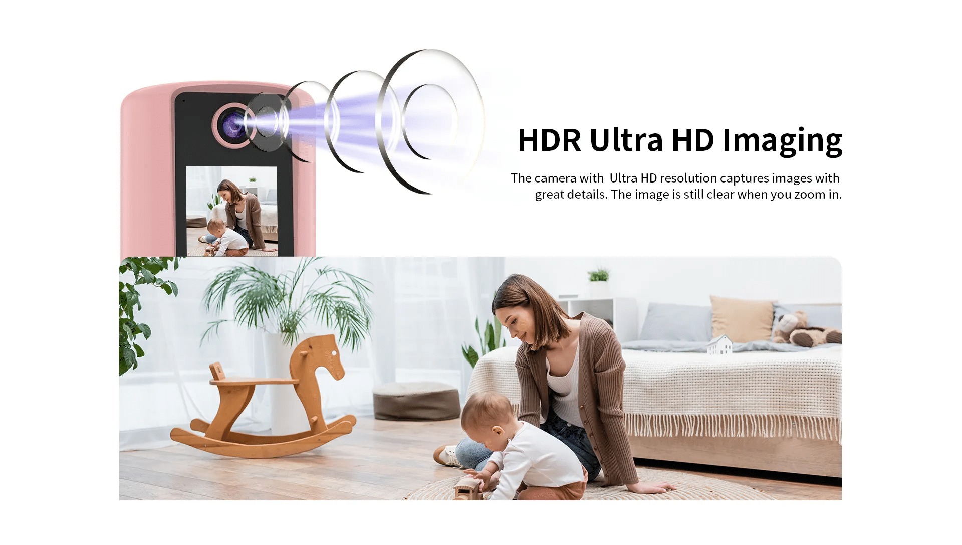 The camera with Ultra HD resolution captures images with great detail. The image is still clear when you zoom in.
