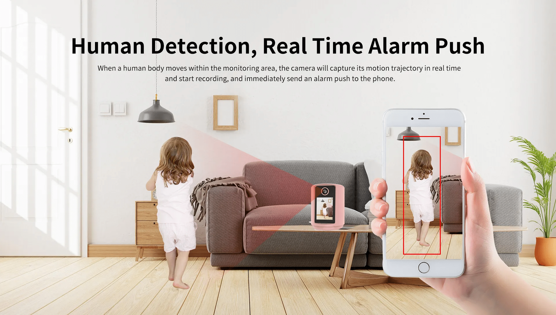 When a human body moves within the monitoring area, the camera will capture its motion trajectory in real time, start recording, and immediately send an alarm push to the phone.