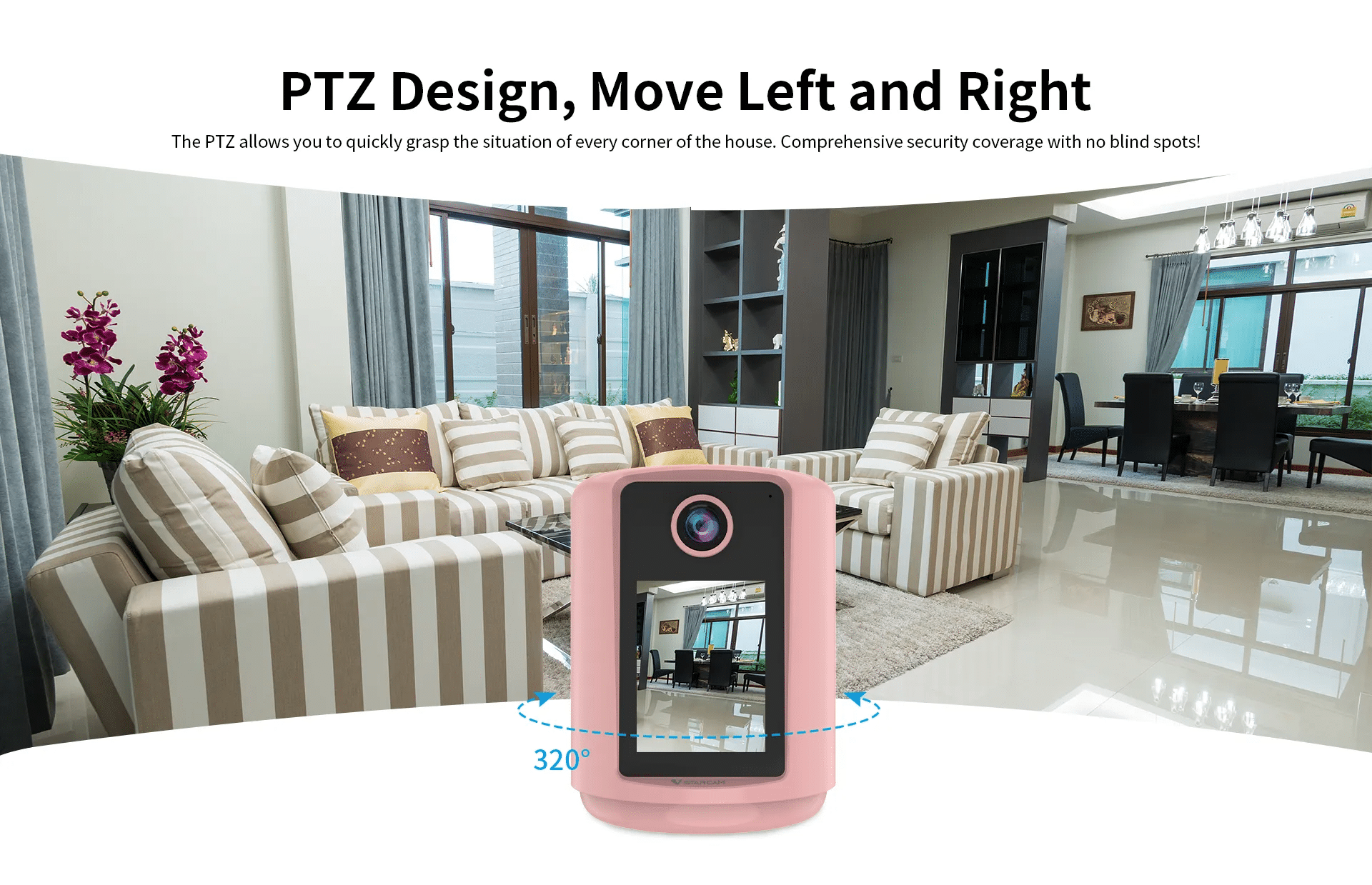 The PTZ allows you to quickly grasp the situation of every corner ofthe house. Comprehensive security coverage with no blind spots