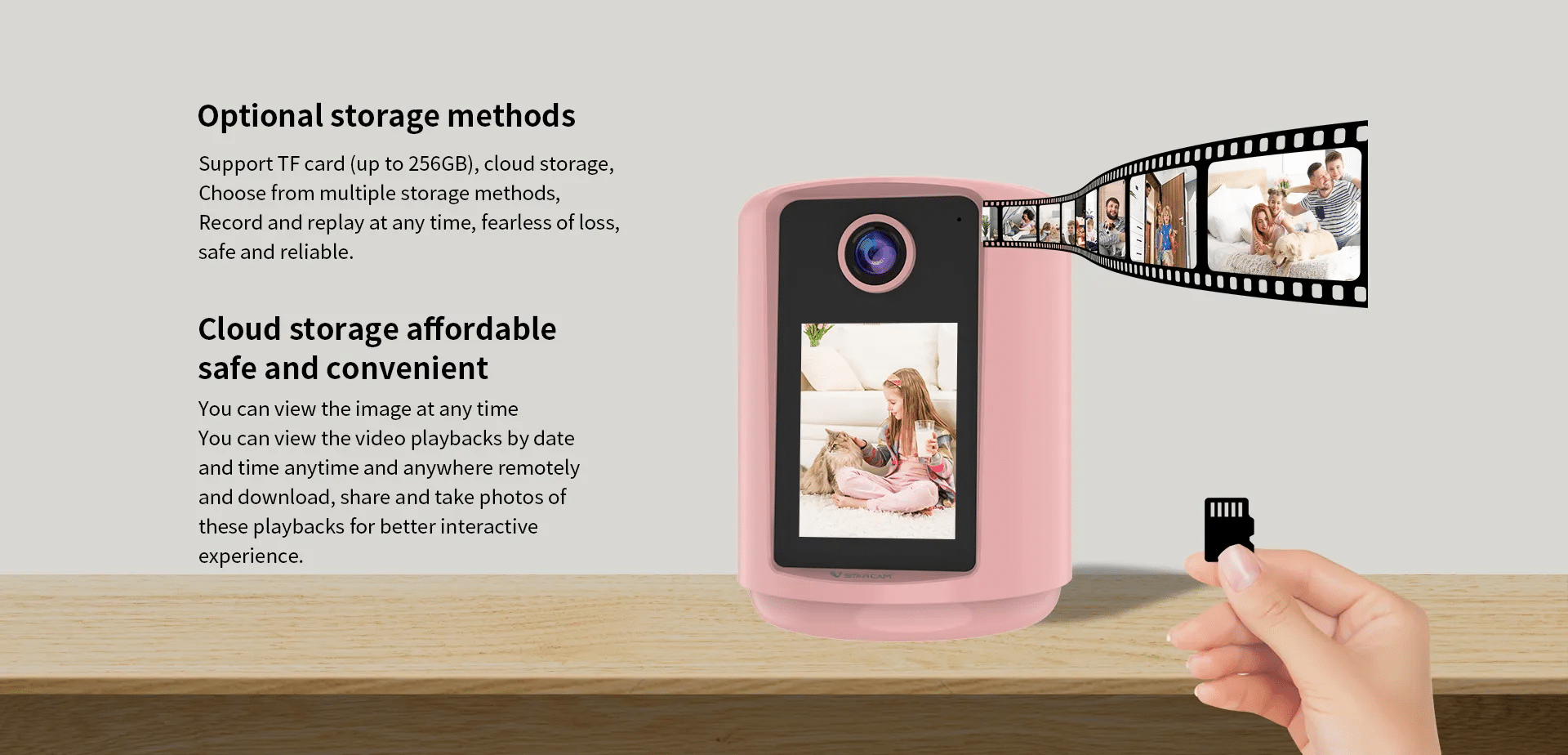 Support TF card (up to 256GB), cloud storage, Choose from multiple storage methods, Record and replay at any time, fearless of loss, safe and reliable.